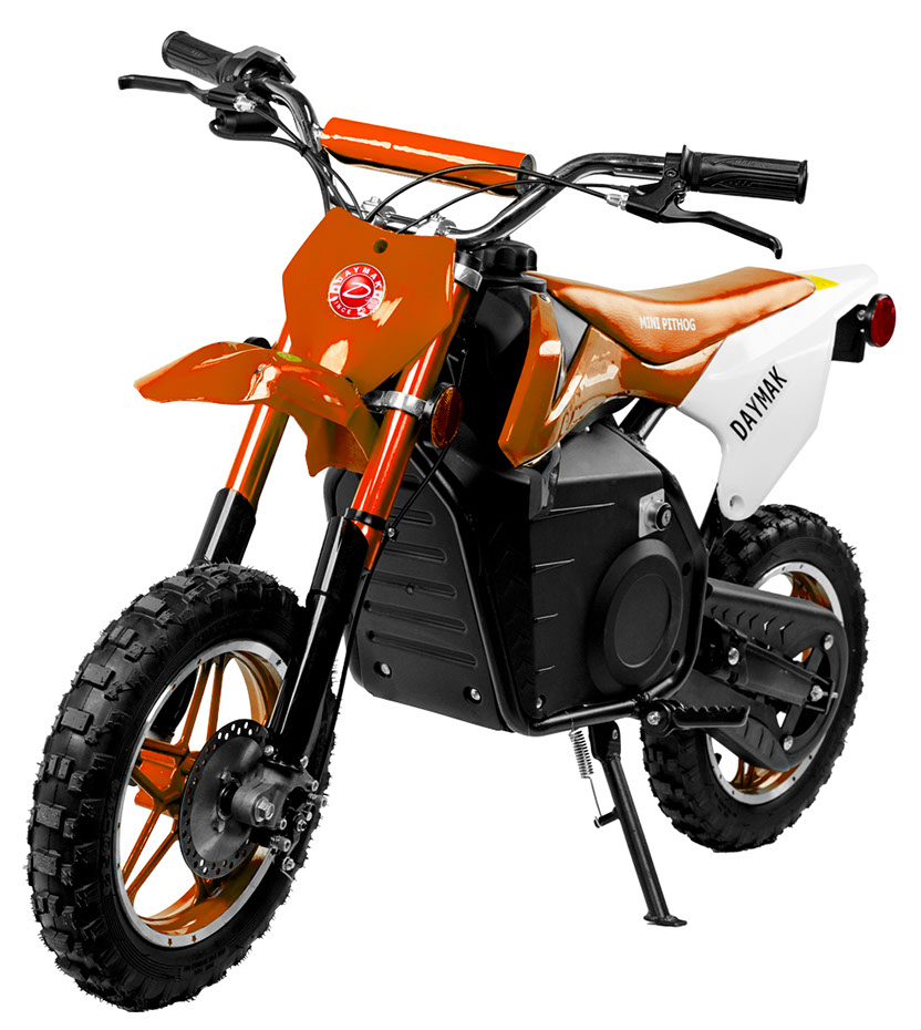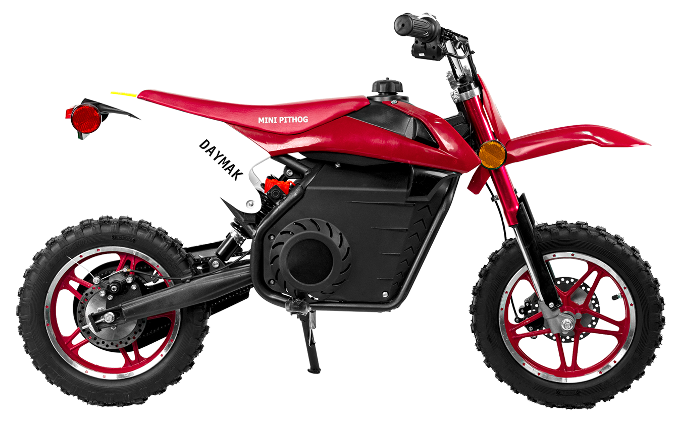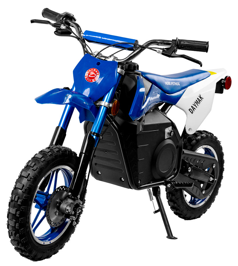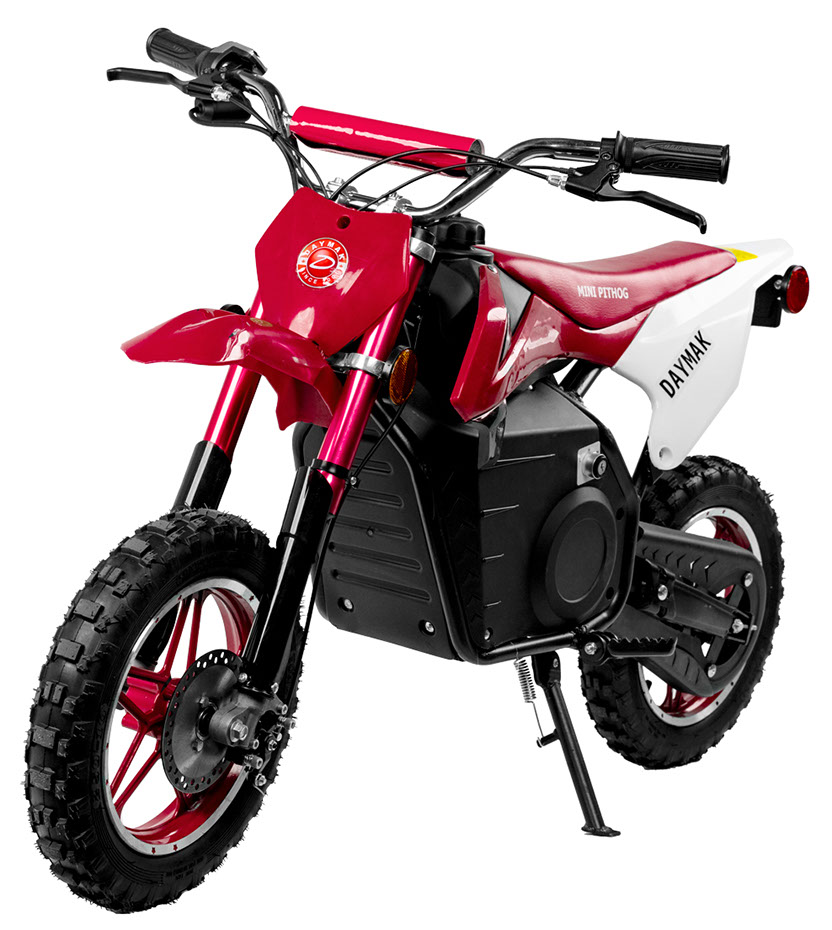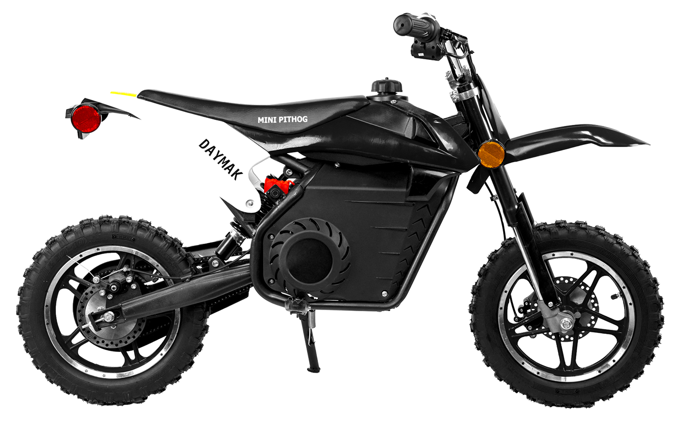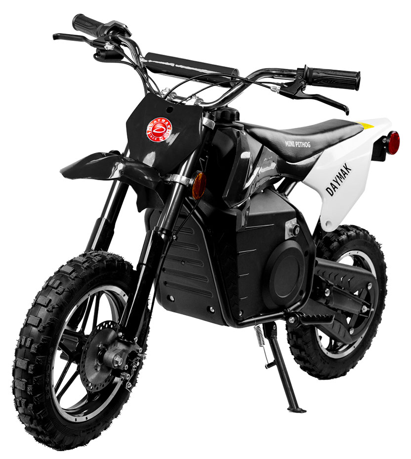 The Daymak Mini Pithog is back again and with new features to every kid’s favourite electric dirt bike. Give your loved one hours of fun on the fully automatic Mini Pithog. New features for the Mini Pithog include a 500W chain drive motor which gives you lots of power and reduced weight! Also, the Mini Pithog comes with a 3 speed switch which is only adjustable by key so you can start the kids off slow with a maximum speed of 5 km/h and when they’re ready unlock the full potential get up to speeds of 25 km/h! Have your kid rip it through trails or race their friends in their own home-made motocross track circuit! Get their love for the outdoors, adventure and speed started early with the Mini Pithog available now! Adult assembly is required.