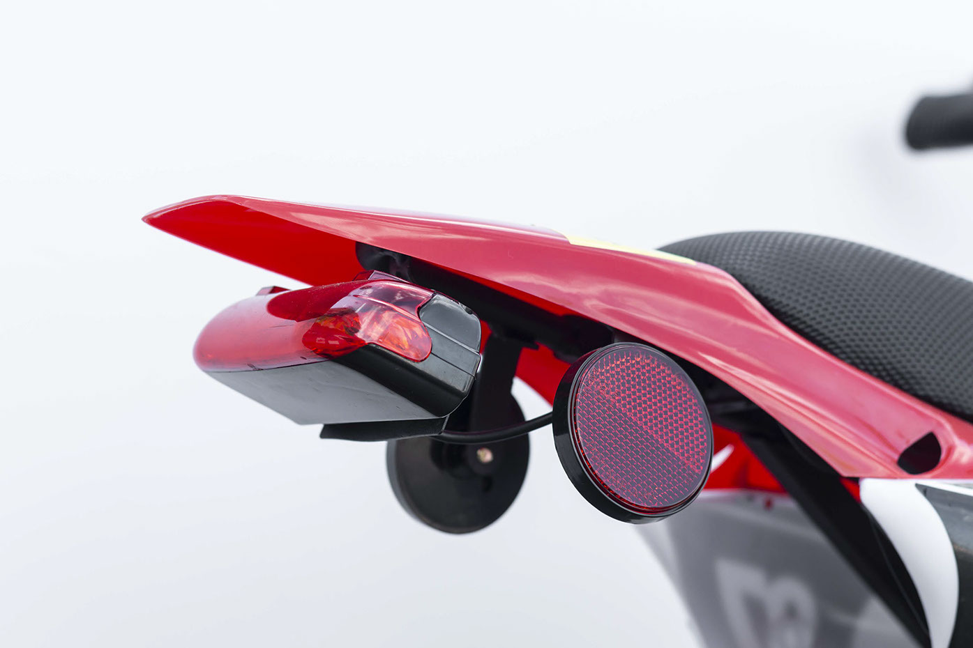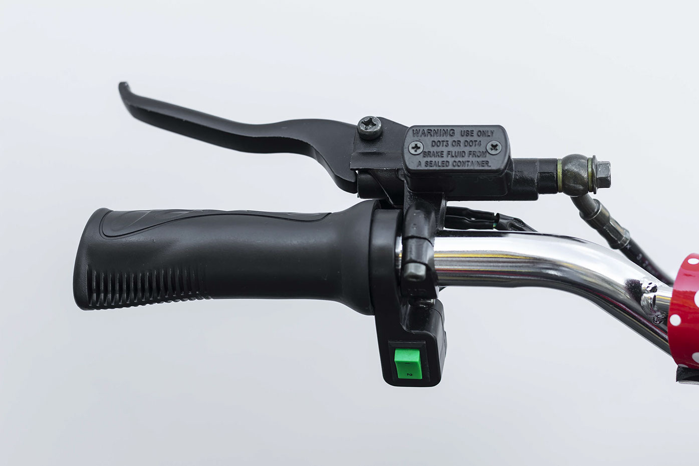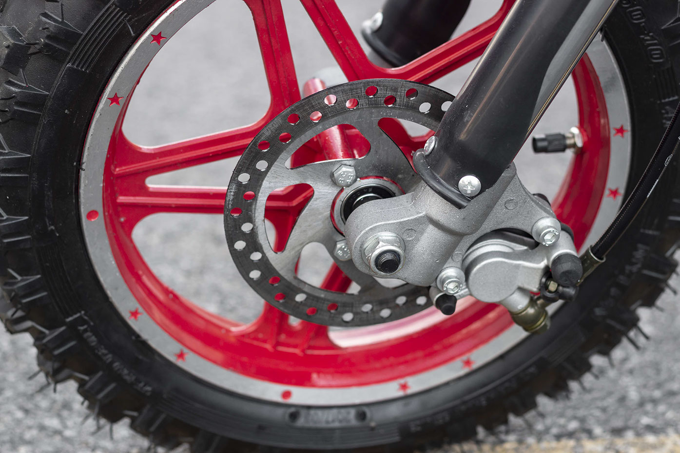Just as important as getting top speeds is making sure it stops when you need it to! The Mini Pithog comes with front and rear disc brakes to make sure they can stop when necessary! Make sure to stop with the rear brakes first!